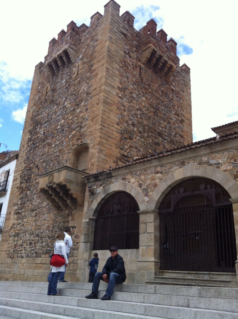 | Con la Torre de Bujaco de Cáceres al fondo |