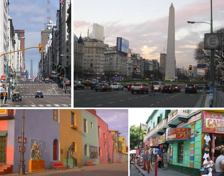BUENOS AIRES (Arriba: Avenidas Corrientes y 9 de julio; Abajo: Barrio de la Boca y Caminito)
