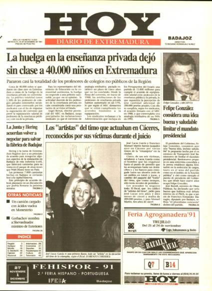 – Extremistas de derecha tirotean a un grupo de dirigentes de HB en un restaurante madrileño, atentado que le costó la vida al diputado de HB, Josu Muguruza.