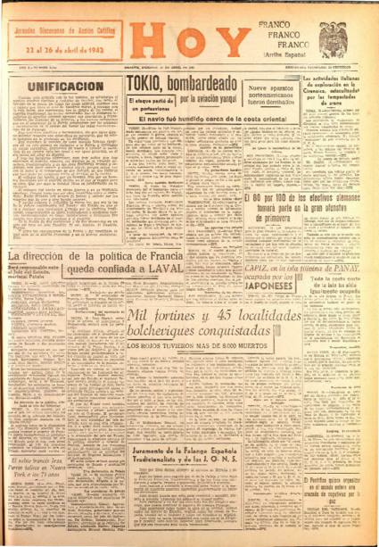 1937.- Decreto de unificación, por el que Franco crea Falange Española Tradicionalista y de las JONS.