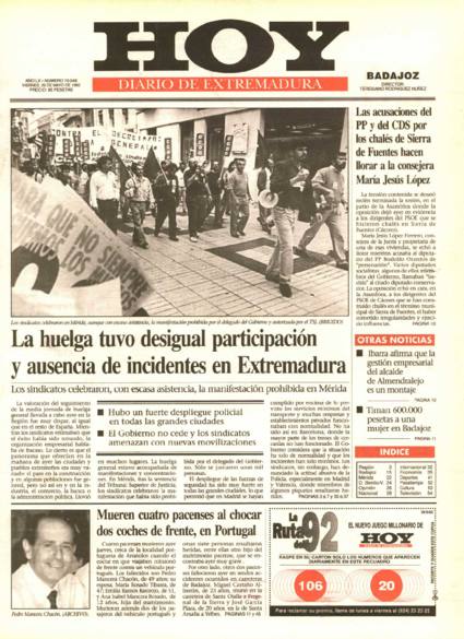 1985.- Mueren 39 personas y otras 117 resultaron heridas en el estadio Heysel de Bruselas durante una avalancha provocada por aficionados ingleses antes decomenzar el encuentro de la Final de la Copa de Europa de fútbol, en la que la Juventus ganó al Liverpool.