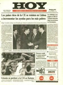 1989.- La Cumbre de presidentes y jefes de Estado de la CE acuerda en Madrid iniciar el proceso para la Unidad Económica y Monetaria a partir del 1 de julio de 1990 e impulsar una acción exterior común.