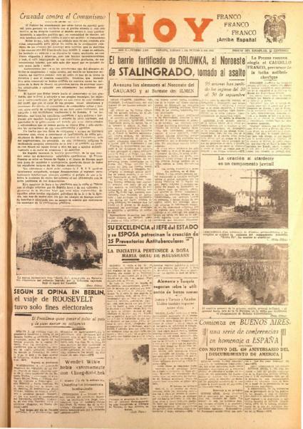 1936.- Guerra Civil española: el general Franco traslada su cuartel general a Salamanca.