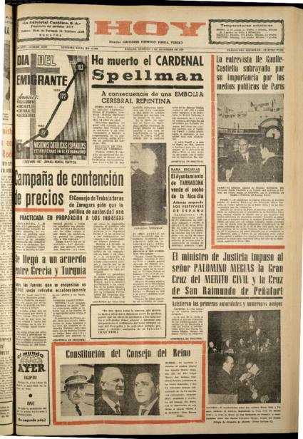 1970.- Comienza el “proceso de Burgos” contra militantes de ETA, que acabó el 28 de diciembre con nueve sentencias de muerte, 500 años de prisión, multas por valor de 1.500.000 pesetas y una absolución. El general Franco indultó dos días después a los condenados a la pena capital.