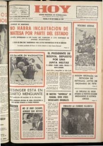 1970.- El rey Husein y Yaser Arafat firman en El Cairo un acuerdo que pone fin a duros enfrentamientos armados en Jordania, entre jordanos y palestinos.