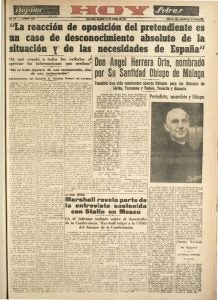 1944.- El periodista Ángel Herrera Oria, fundador y director de “El Debate”, es nombrado obispo de Málaga.
