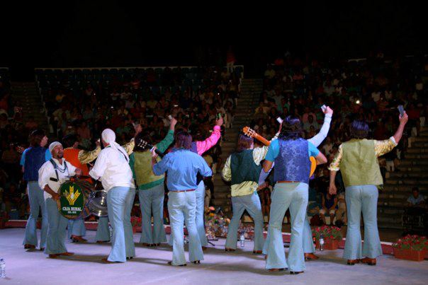 Momento de la actuación de Los Puretas del Caribe en Olivenza