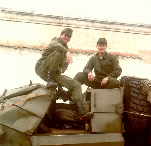 El taller de Autos estaba al mando del teniente especialista Blanco, y también estaba el sargento especialista Masa que ascendió a Sargento 1º a las pocas semanas de llegar yo. Creo recordar que el coronel jefe del CIR era por aquella época don Pedro de la Morena Gómez. Algunos mandos que recuerdo eran: El sargento Galán, el sargento especialista en armamento Fausto, el subteniente Treviño y muchos más que no recuerdo sus nombres como el brigada de intendencia, que aparece en una de las fotos, todos ellos de la Unidad de Servicios del Cuartel. También guardo muy buen recuerdo de muchos soldados mecánicos y conductores de la Unidad de Autos, en especial de Javi de Salamanca, y Javier de Badajoz con los que solía salir por las tardes a tomar los churros en El Gran Café y noches libres por la Plaza y la Madrila, que tiempos aquellos.