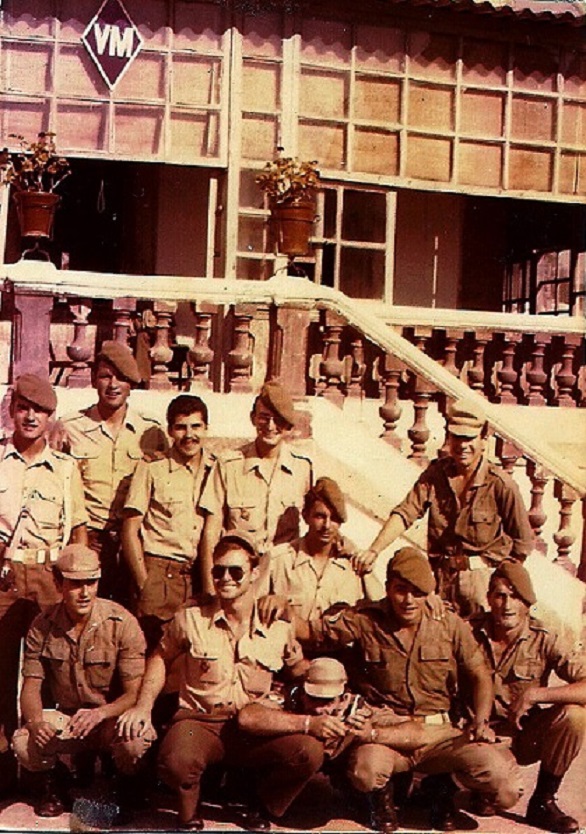 Después de mi jura de bandera me destinaron, en el mismo cuartel, a la compañía de Policía Interior ‘VM’. Aquí tenéis una foto donde, que yo recuerde, están compañeros como Garrido (Tiburon), Alegre, Ordiales, Burgos, Real y un buen chaval de Aliseda que no consigo recordar su nombre (¿Rufo?)… Faltaba nuestro famoso cabo 1º Enriquito.
