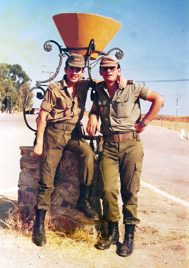 Al aprobar el curso de cabo 1º me trasladaron al CIR, a la 6ª Compañía (la pequeña legión) junto al teniente, Don Miguel Fernández Díaz, hombre del que guardo un grato recuerdo y respeto porque para mí era un gran profesional, así como de mis compañeros de los cuales ahora recuerdo a Alberto Caro (furriel) y Aguilar Pina (cabo 1º). Aquí tenéis un par de fotos más, una de ellas con mi amigo José Real.
