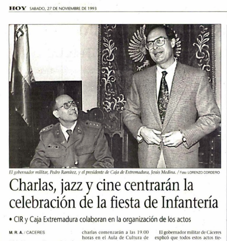 A finales de noviembre el coronel jefe del CIR y Jesús Medina Ocaña, presidente de Caja Extremadura, ofrecieron una rueda de prensa para dar a conocer las actividades organizadas para la fiesta de la patrona de la Infantería, la Inmaculada Concepción. Hubo conferencias sobre la participación de los extremeños en la conquista de América, un concierto de jazz del pianista Javier Arroyo, una exposición de la pintora y alcaldesa de Montánchez María Julia Pelaez, y la proyección de la película Fitzcarraldo del director Werner Herzog. El coronel Ramírez Verdún señaló que en el CIR había un total de 2.178 hombres.