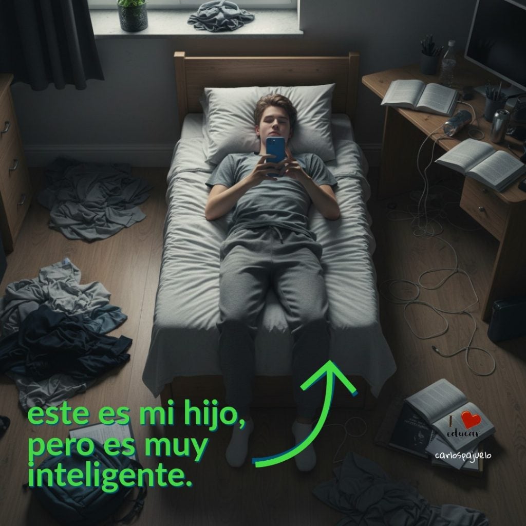 Hay padres que miran, con el corazón encogido, a sus hijos tumbados en la cama, con el móvil constantemente en la mano y su cuarto hecho un escenario del caos, y se miran y repiten una letanía que les tranquiliza: “Es muy inteligente, no te preocupes.”