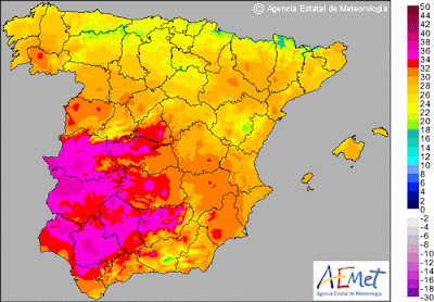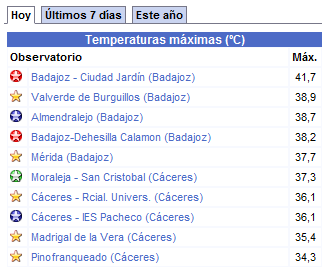 A continuación vemos un ranking de temperaturas máximas según meteoclimatic: