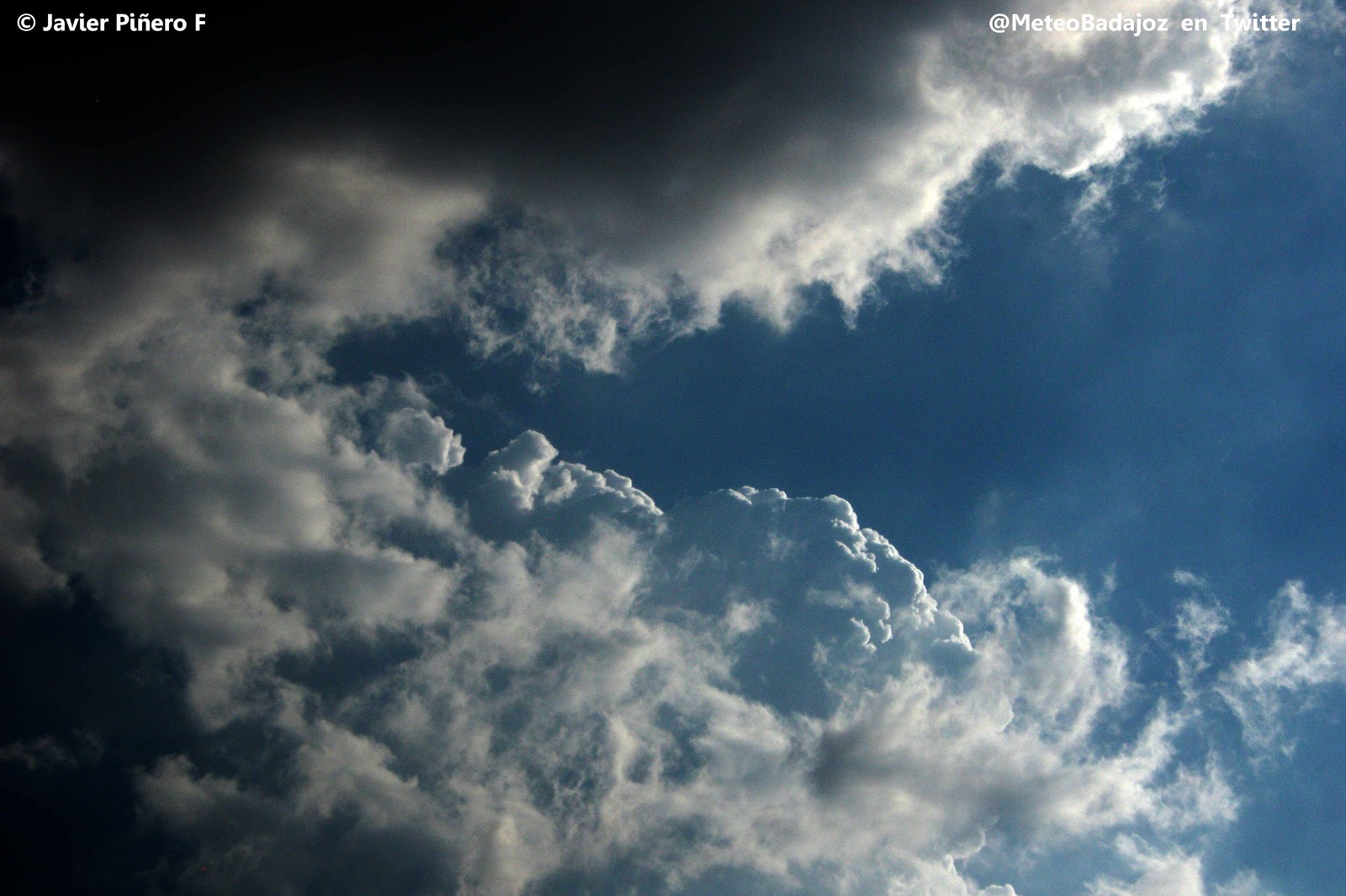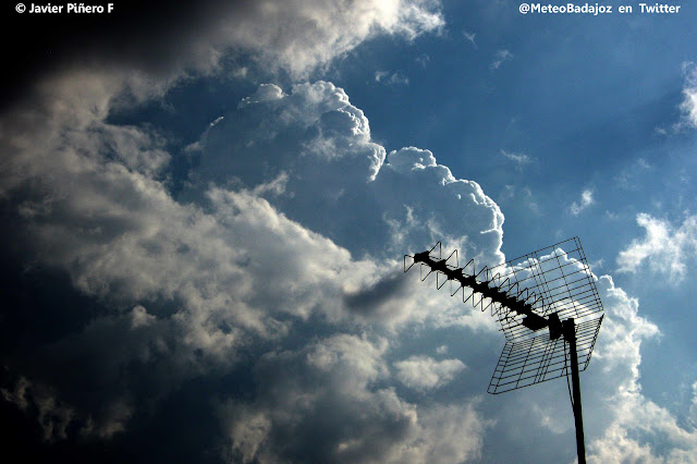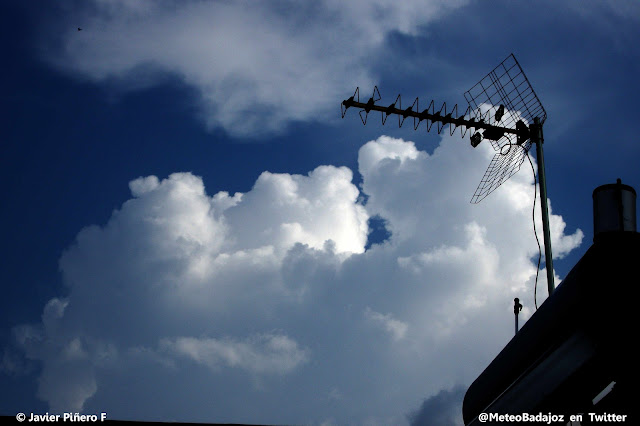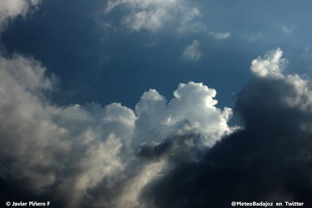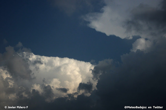 Algunos claros entre esos yunques colosales que pertenecían a las tormentas que se formaban al sur de la provincia de Badajoz.