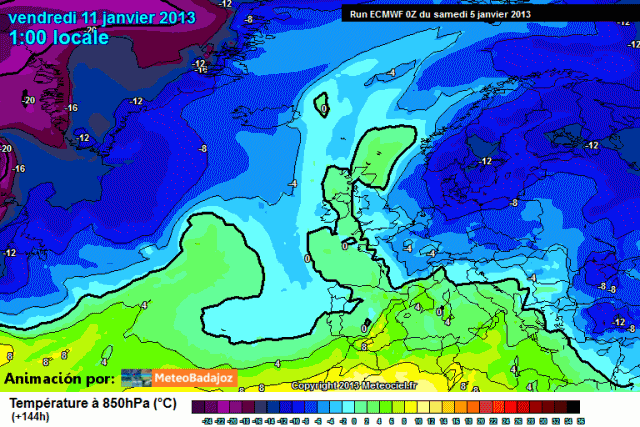 Así muestra el modelo europeo el avance, por el centro de Europa, de esa burbuja de aire muy frío a 850 hPa (1.5000 metros de altura), que arranca desde la Península Escandinava y sobre el mar Báltico, avanzando hacia el suroeste hasta alcanzar el noreste de la Península Ibérica, eso sí, con algo menos de fuerza. En el último mapa que nos ofrece el europeo, vemos isotermas de hasta -8ºC afectando a zonas del noreste peninsular y en menos medida a puntos del centro. En el Pirineo, isotermas con valores incluso inferiores a los -8ºC, pero el mismo Pirineo hace de barrera a todo lo que nos llega desde el centro del continente europeo, así que gran parte de ese aire frío quedará en la cara norte de éste sistema montañoso.