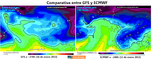 Un día más seguimos viendo algunas novedades a medio plazo y, especialmente, a largo plazo. Esta mañana, la salida de las 00h del GFS y la salida actual del modelo europeo ECMWF, coinciden en una posible irrupción de aire frío desde Centroeuropa hacia el 15-16 de enero. Ayer éstos modelos ya veían algo parecido pero hoy es un poco más evidente.