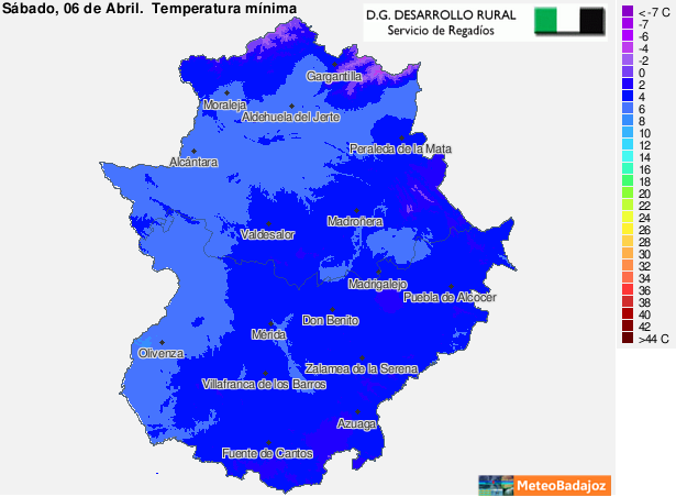 Temperaturas mínimas previstas para la noche del viernes-sábado en Extremadura.