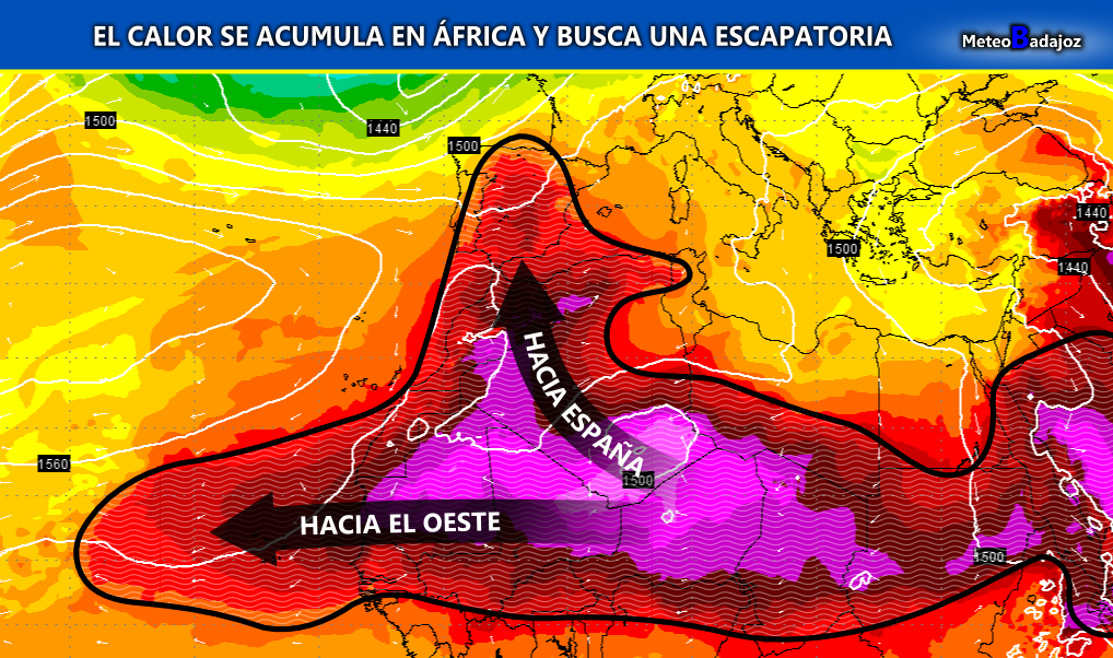 En el interior del continente africano, en estos meses tan calurosos, se suele forman una gran masa de aire extremadamente cálida, que afecta a la mayor parte del Sahara y que, debido a la acumulación de calor, se ve obligada a buscar una salida para renovar el aire. Habitualmente lo hace por las Islas de Cabo Verde, extendiéndose hacia el oeste a través del Atlántico central, y ayudado por los vientos alisios de noreste que proporciona el anticiclón de las Azores, pero también estas masas de aire cálido “se escapan” de África accediendo por el sur de Europa.