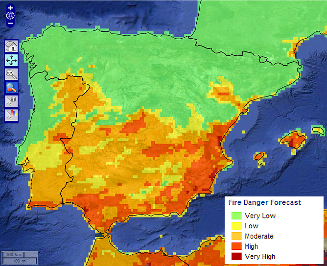 En ésta dirección web podrán encontrar información diaria al respecto, con un mapa de riesgo de incendios para toda Europa, y con una resolución bastante aceptable. Una herramienta que puede servir de gran ayuda a esas agrupaciones de protección civil y bomberos que velan por nuestra seguridad y por la de nuestro entorno.