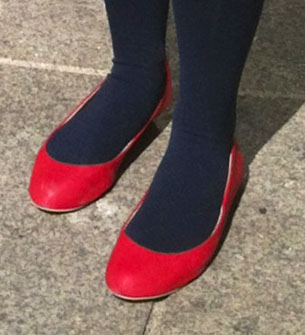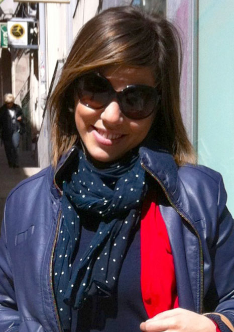 La combinación del color rojo y el azul marino es una apuesta segura. Inma lleva vestido, bolso y pañuelo de Stradivarius. Las bailarinas rojas son de Bershka y la rebeca de punto del mismo tono, de Blanco. La cazadora de acabado de cuero la compró en Madrid (no recuerda el nombre de la tienda). Las medias son de Calzedonia y las gafas de sol, de Ralph Lauren.