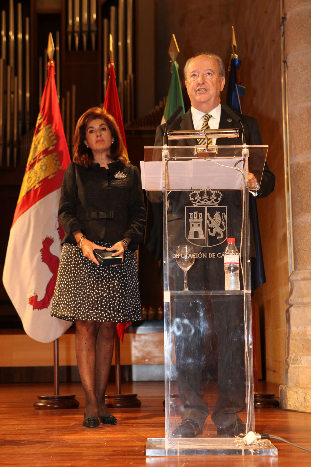 ¡Hola! El lunes se celebró en el Complejo Cultural San Francisco el acto de entrega de la medalla de Cáceres, que este año ha recaído en la Fundación Mercedes Calles. Os dejo con tres looks de la noche. Para empezar, el de la alcaldesa, Elena Nevado. De su vestido me gustó, sobre todo, el detalle de las plumas, colocadas estratégicamente en la cintura para lograr el efecto péplum, que tan de moda está esta temporada.