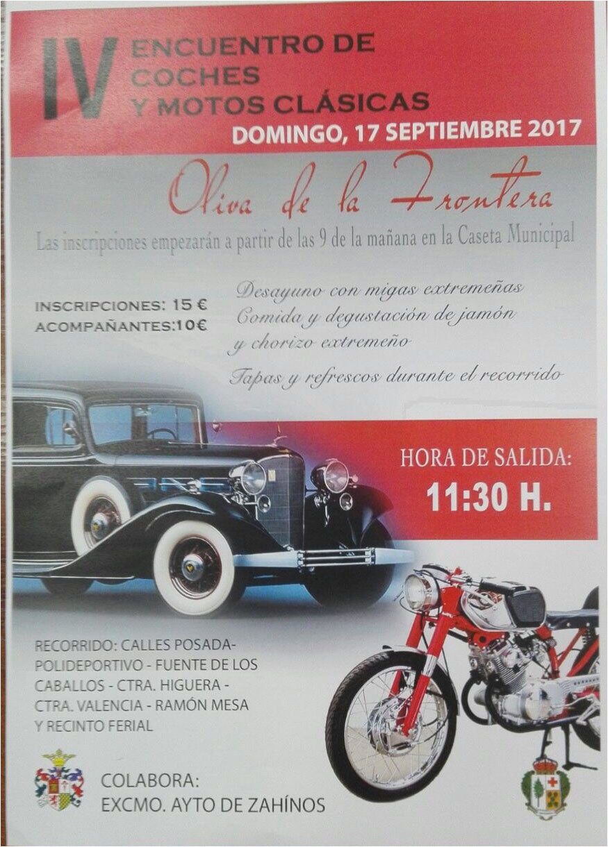 El domingo 17 de septiembre, tendrá lugar el cuarto encuentro de vehículos clásicos, tanto coches como motos, en la localidad de Oliva de la Frontera (Badajoz).