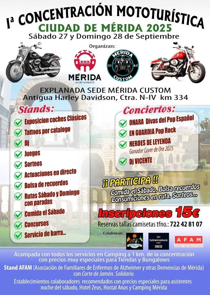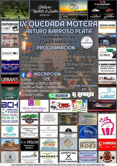 Inscripción: 20€ Incluye dos rutas moteras, cena del sábado, comida del domingo, dos conciertos en directo y participación en el sorteo de regalos. Info: 627 57 27 97 / 615 67 81 87