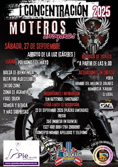 El próximo sábado 27 de septiembre, los motores rugirán en Arroyo de la Luz con la primera edición de la Concentración Moteros Arroyanos, organizada por el Moto Club local. El evento se celebrará en una gran carpa instalada en el Polígono Industrial 1º de Mayo y promete ser una jornada inolvidable para los amantes de las dos ruedas.