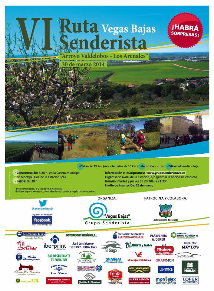 El grupo Senderista Vegas Bajas ha organizado para el próximo 30 de marzo la ruta ‘Arroyo Valdelobos-Los Arenales‘. Se trata de una marcha con salida desde Montijo y 19 kilómetros de recorrido. Habrá una alternativa de 10 kilómetros. El trazado es circular y la dificultad media-baja. Puedes inscribirte hasta el 25 de marzo en http://