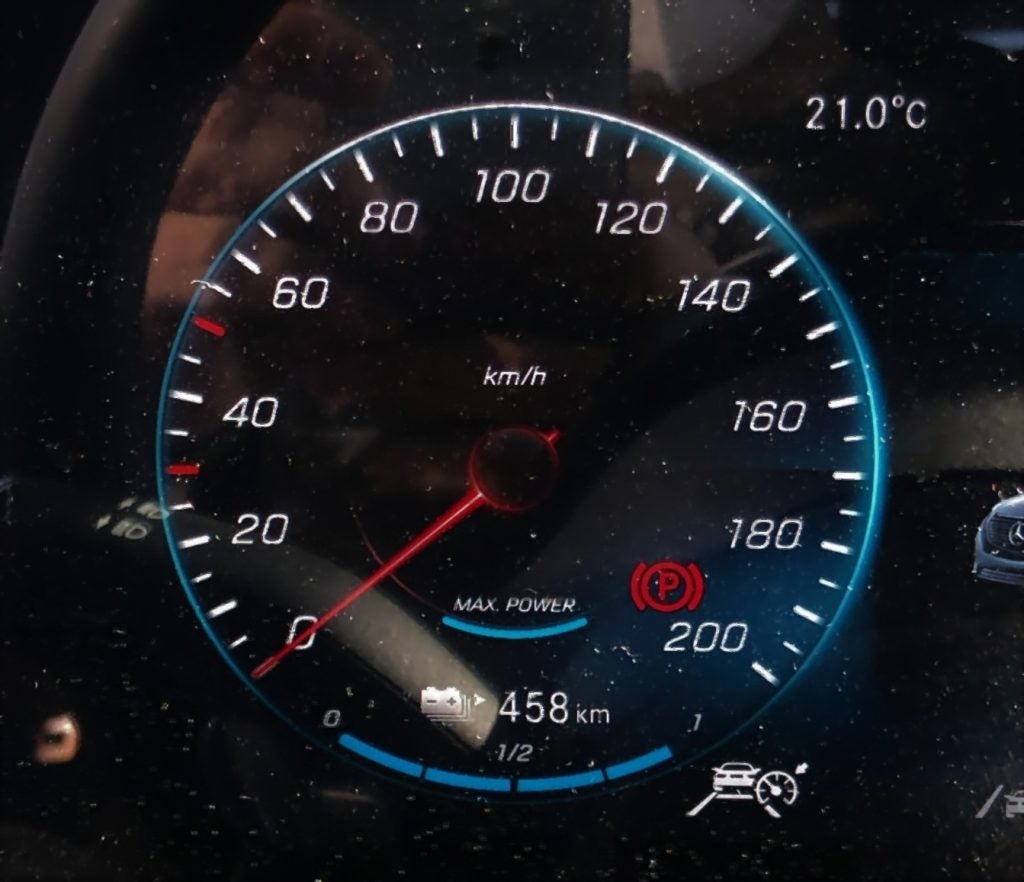Después de hacerle casi 1000 km en el fin de semana, lo devolvimos con una estimación de 480 km (en la imagen muestra 458 al 95%):