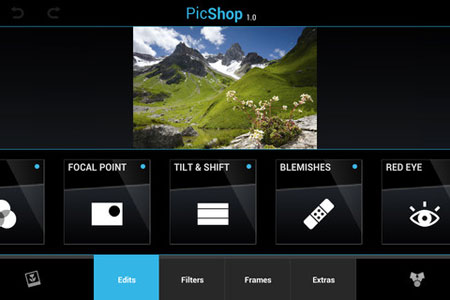 Con PicShop HD podrás editar imágenes HD de hasta 8MP. Además tiene muchísimas de opciones de edición (corrección automática de colores, recortar, tilt-shfit, ojo de pez, ojos rojos, punto de desenfoque…) y docena de filtros, marcos y extras. Ésto lo convierte en la primera suite de edición fotográfica para móvil del mercado.